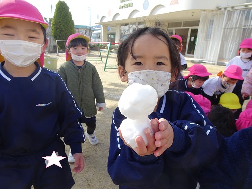 こっちでは、雪を拾って…