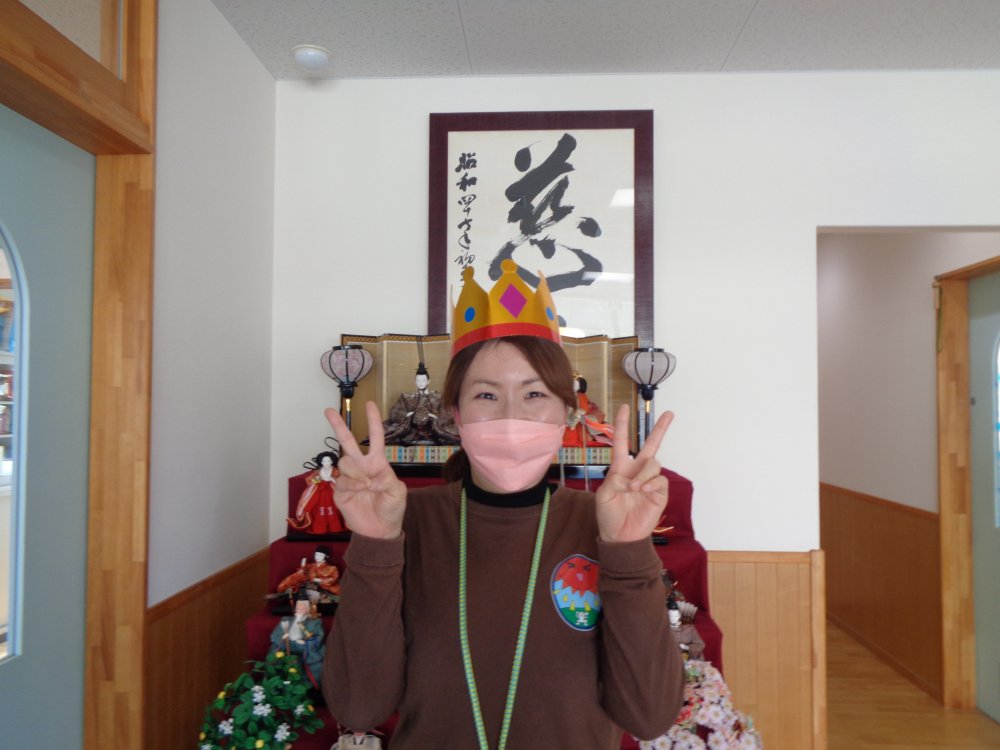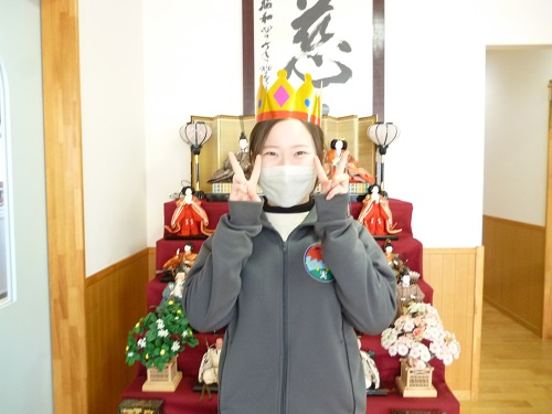 続いては、今日事務室前に飾っているお雛様を見に、廊下をそぉ~っと歩いて見に行きました✨
