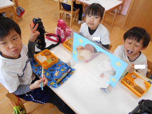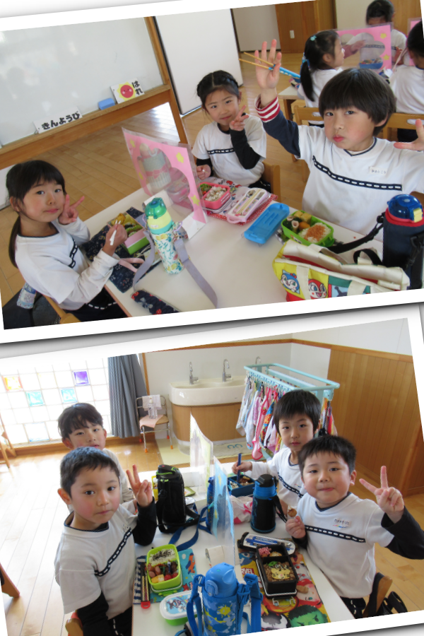 給食は、3学期になって新しいグループになり、また違ったお友達と完食を目指しながら頑張っていますよ!!