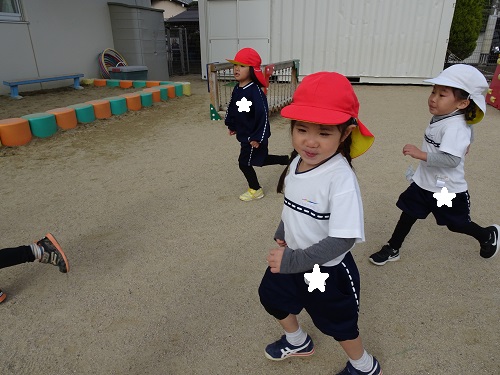 かけっこでは、男の子も女の子も競走意欲むき出しで走りました(笑)