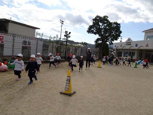 友達に勝って「よっしゃー‼」と喜ぶ子どもや、その反面、友達に負けて悔しい気持ちの子ども、最後まで友達を抜こうと諦めず一生懸命走る子どもや、転んでも泣かずに立ち上がって走り続けた子どもなど、子ども達の気持ちは様々でした💕