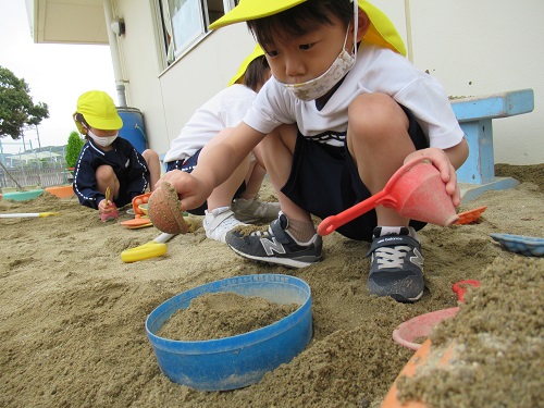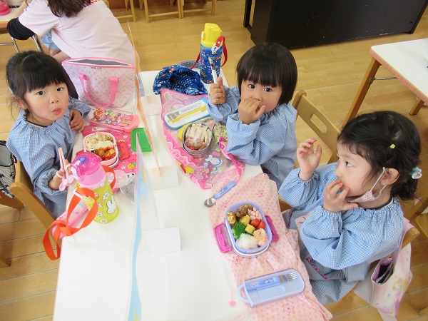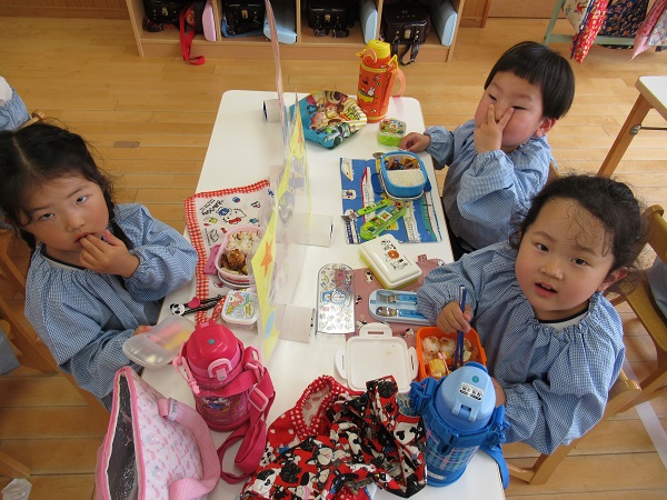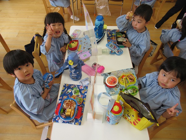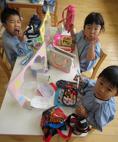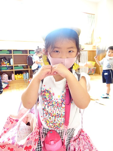 今日から遊び着を幼稚園に置いて帰っています。