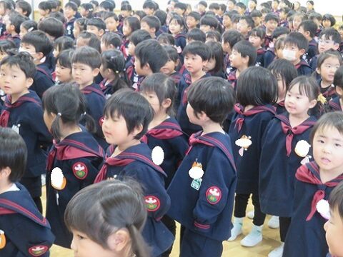 ブログ TOP > ブログ > ✨3学期終園式✨ ✨3学期終園式✨ 今日は3学期の終園式でした。 最後のクラスでの園歌、かっこよく歌えていましたね。 園長先生の話、春休みでも規則正しい生活をしましょうね! 今年度でさようならをする先生達からも、メッセージをもらいました。 離れていても、ずっとずっと応援しています。 本部役員さんからメッセージも頂きました。 保護者の皆様からのメッセージに思わず涙・・・ 温かいメッセージありがとうございました💖 1年間よく頑張りましたね! 春からの新しいクラスでもそれぞれ頑張りましょうね✨ 2026.03.18