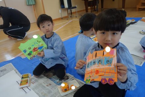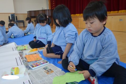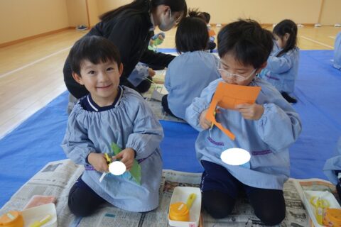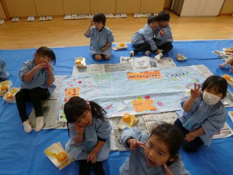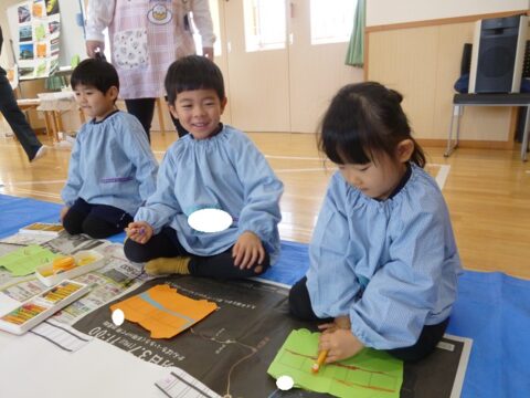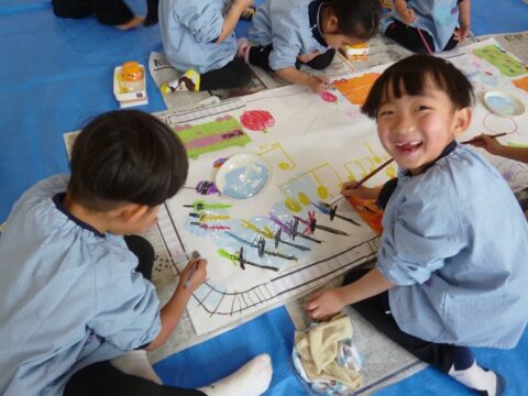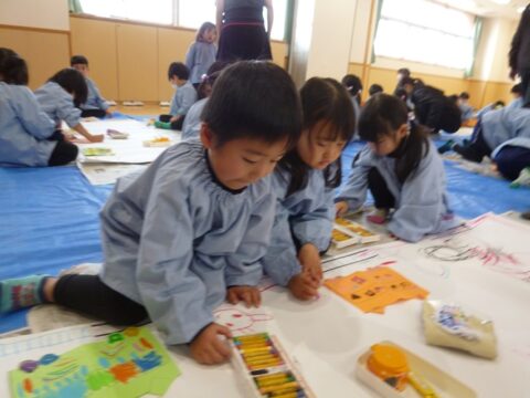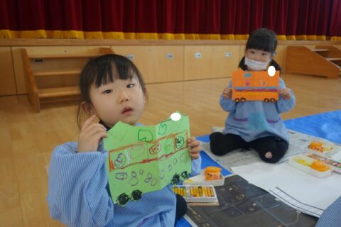 今日はうさぎ組とひよこ組の合同絵画がありましたよ!