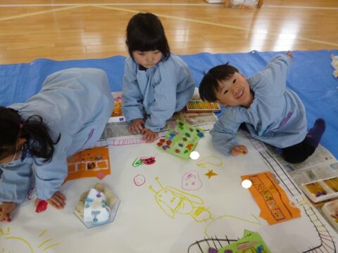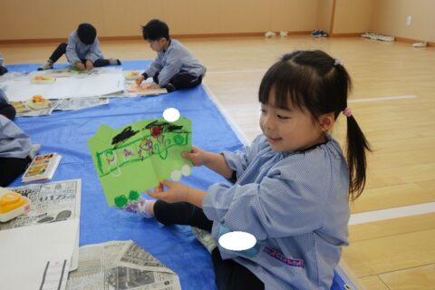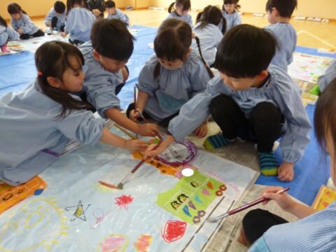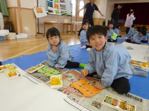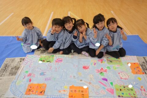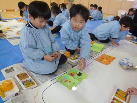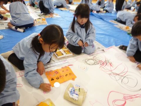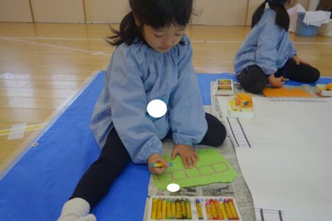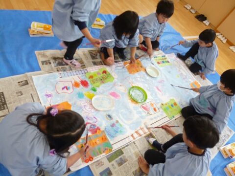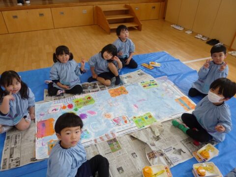 グループで協力して紙全体に絵具を塗ることが出来ました✨