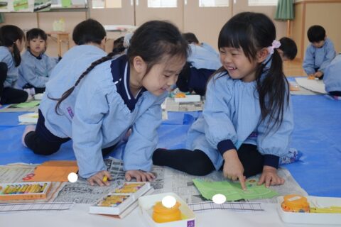 早く切り終わった4歳児のお兄さんお姉さんが