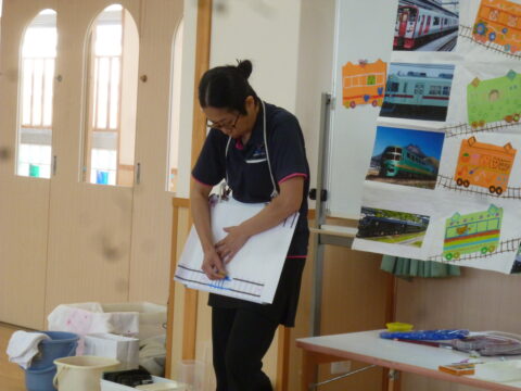次に電車に絵や模様を描いていきます🚃