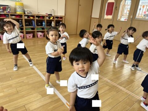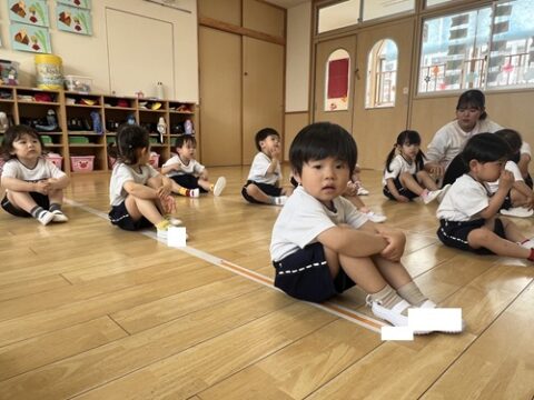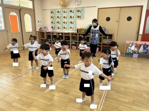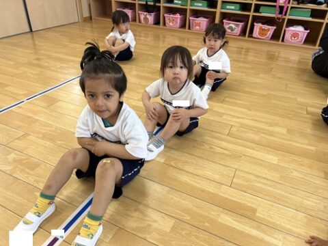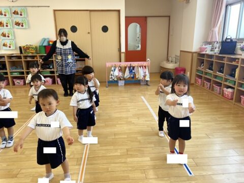 床に貼られてあるマークを見つけて座れるようになったお友達✨