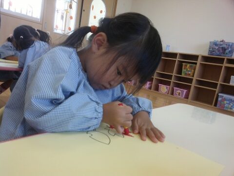 外遊び中に園庭でイチョウの葉っぱを拾って見せてくれたりと