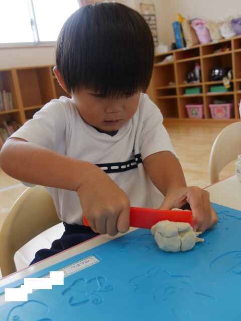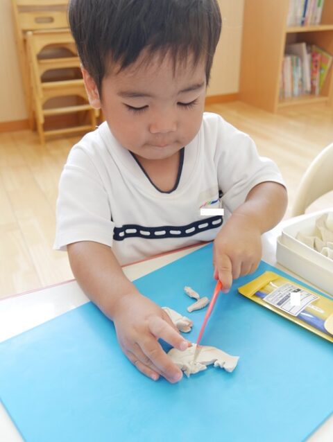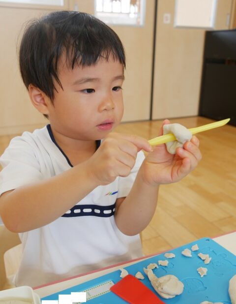 粘土遊びでは初めて「粘土ベラ」を使いました!