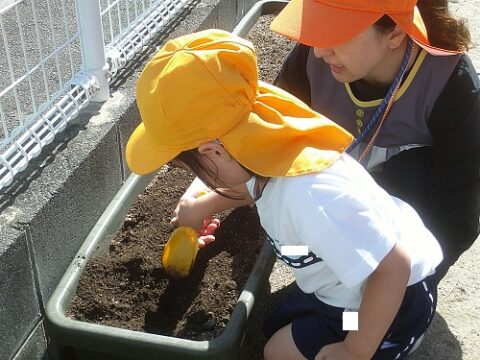 みんなで「おおきくなあれ!!」と声を掛けながら