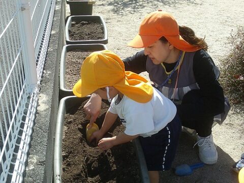 天気の良い日にはみんなでチューリップを植えました!