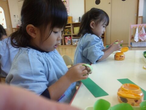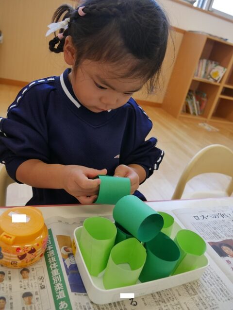 短冊形の画用紙をのりを使って輪にします👀✨