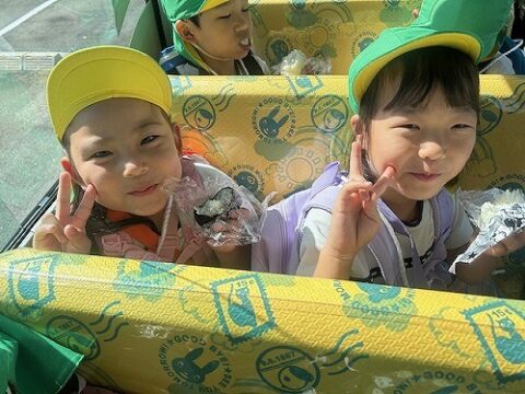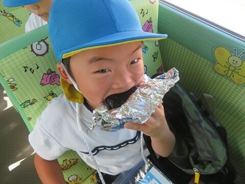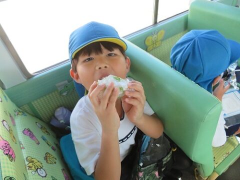 まずは、竹下営業所に着きバスの中でおにぎりを食べました🍙