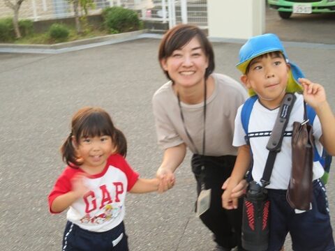 無事に幼稚園に到着し、お家の人達にやっと会えた安心感からか