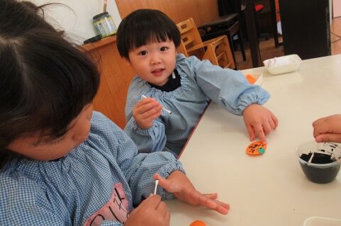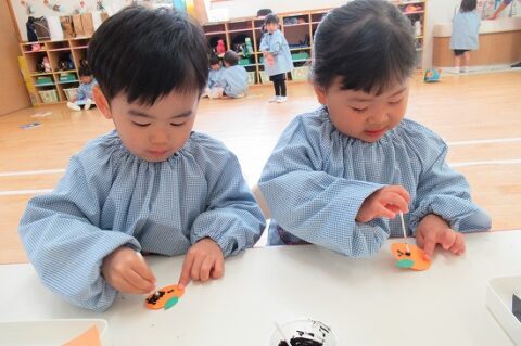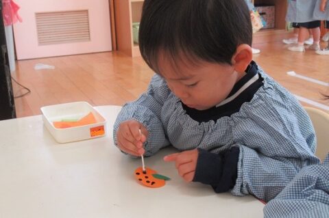 綿棒を使って、🍊みかんのツブツブを表現🍊