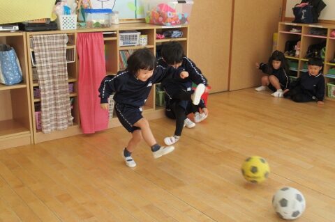 2学期後半から、園庭でボール遊びをする姿が