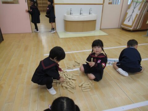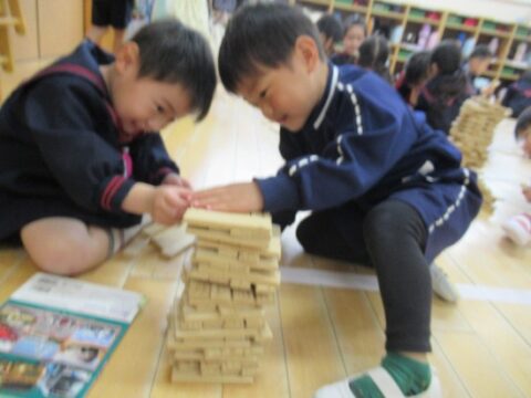 れんげ組さんは、カラカラ積み木で