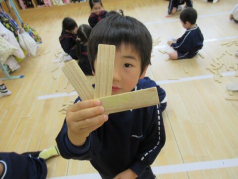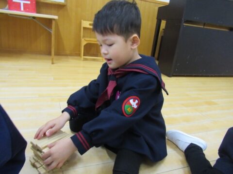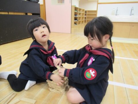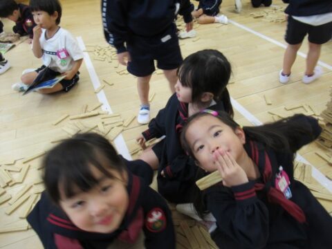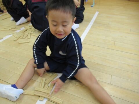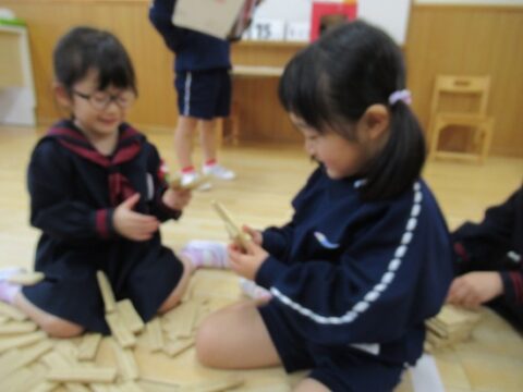 れんげ組さんは、カラカラ積み木で