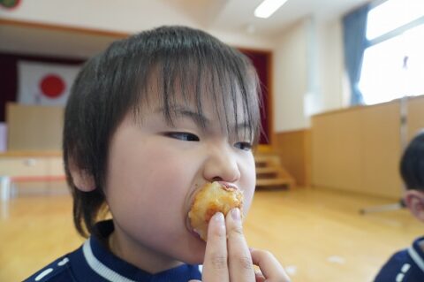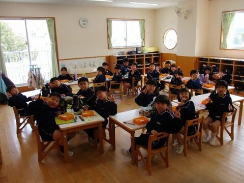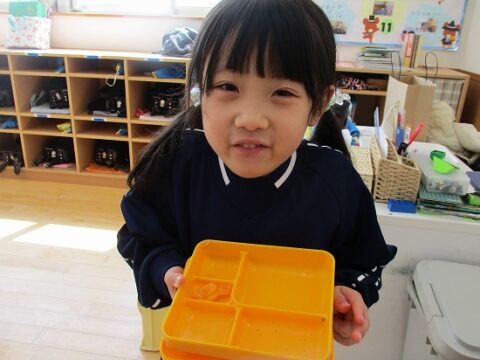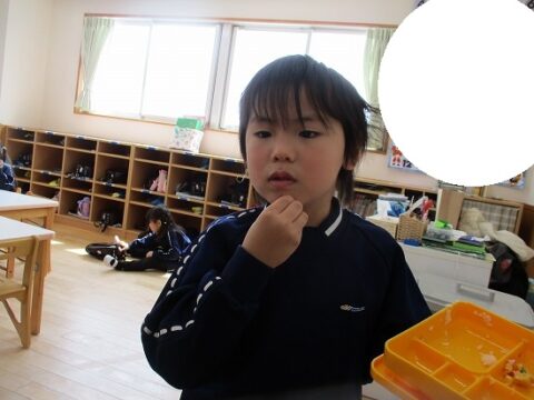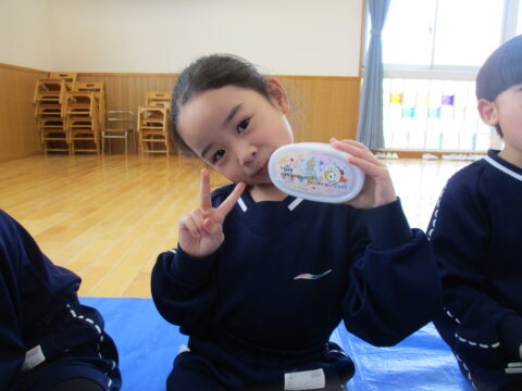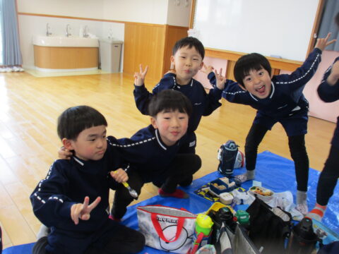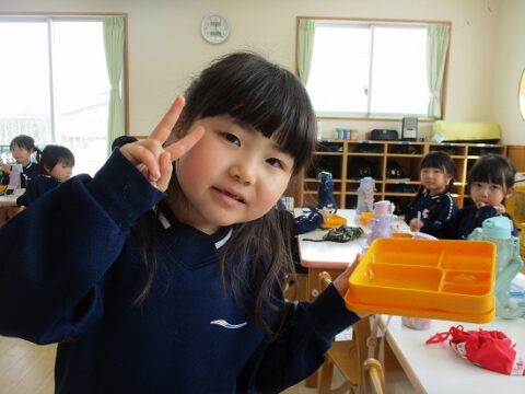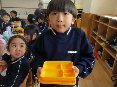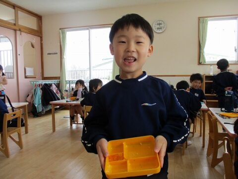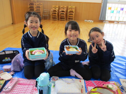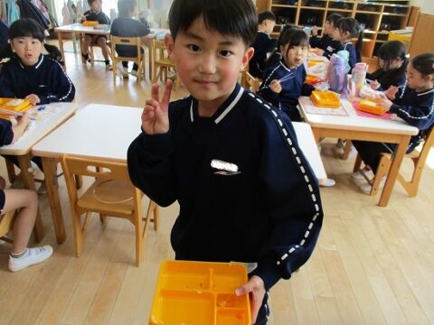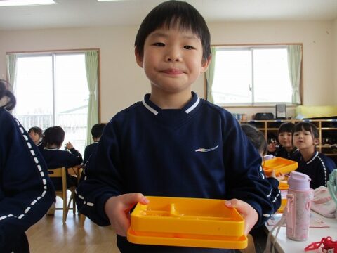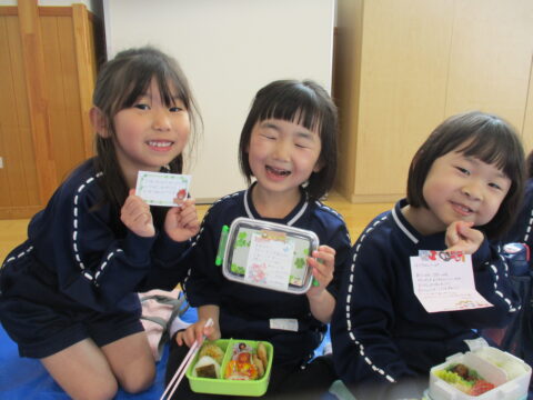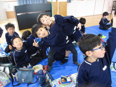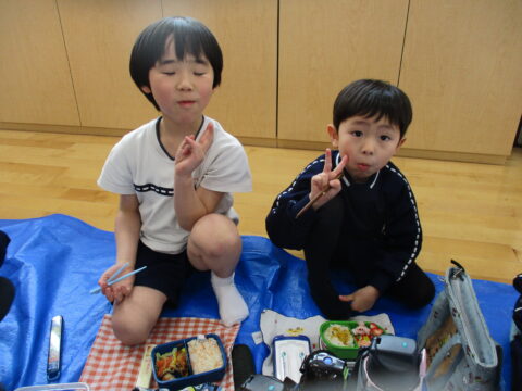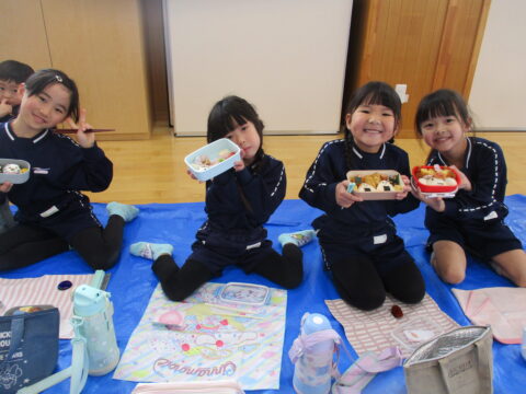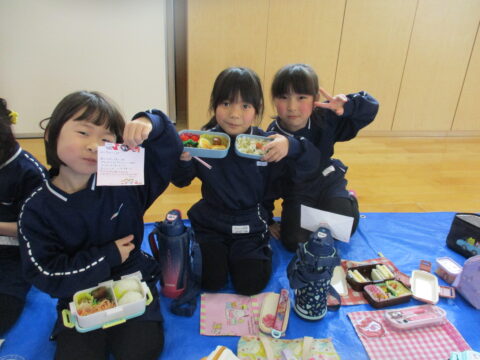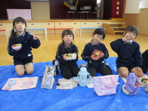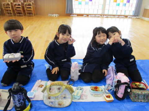 最後のお弁当の日には年長さんみんなで一緒に食べましたよ!