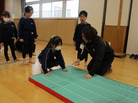 まずはマット運動で身体を慣らして。。。