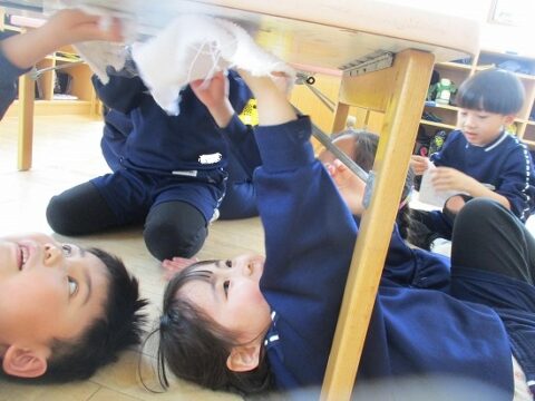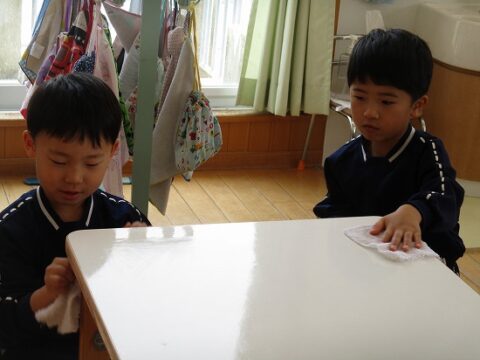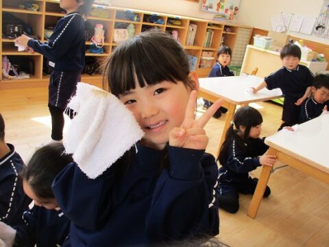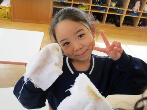 雑巾絞りも上手に出来るようになりましたよ!