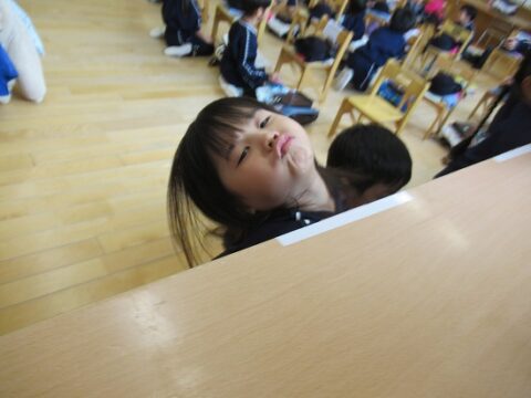 最後の給食はパーティー座りで🥂
