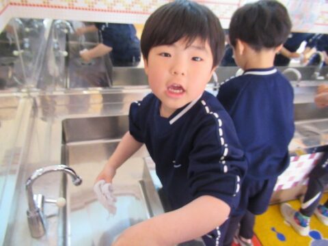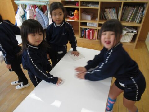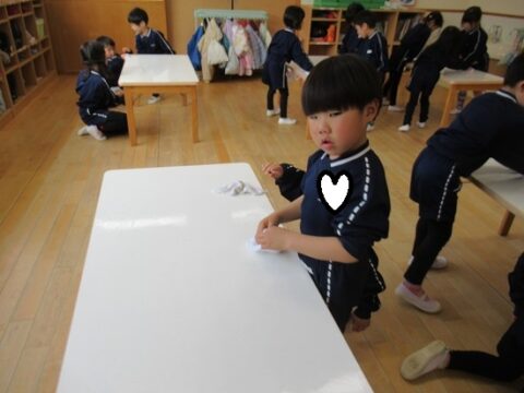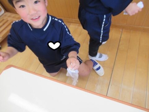 上手に雑巾が絞れて嬉しそうな子ども達でした💗