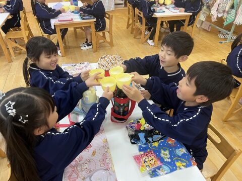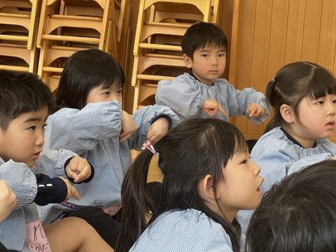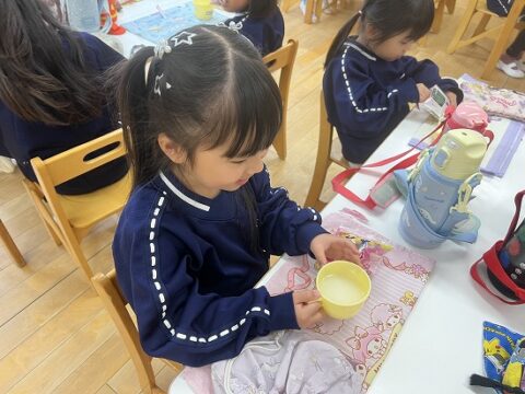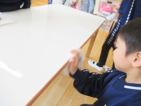 4歳児クラス合同で沢山の事に挑戦をしてきました。