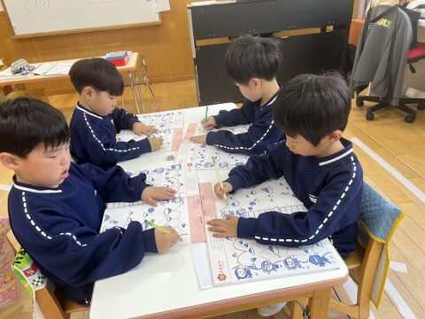 5歳児クラスでは、「文字あそび」にレベルアップ⤴⤴