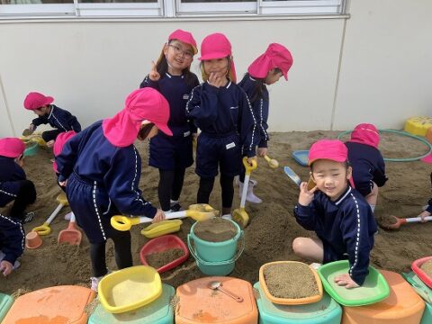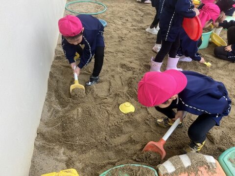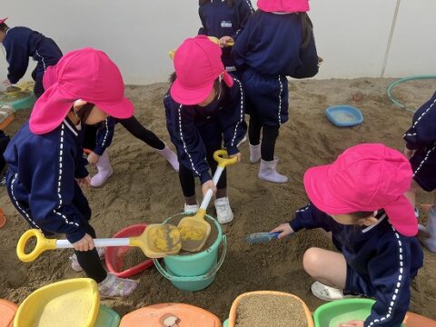ここでは砂場で巨大プリンを作成中・・・