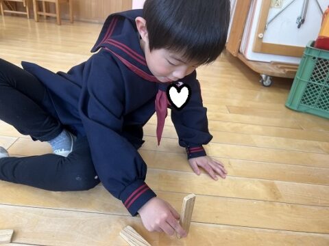 カラカラ積み木では、積んだり、倒したりと