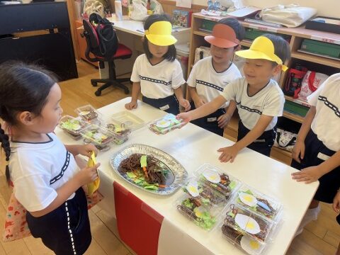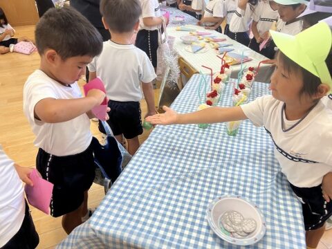 各クラス4つのお店に分かれ、店員さんになりきりました✨