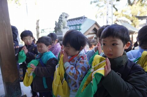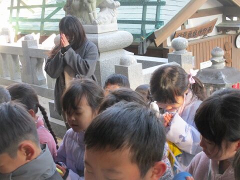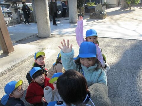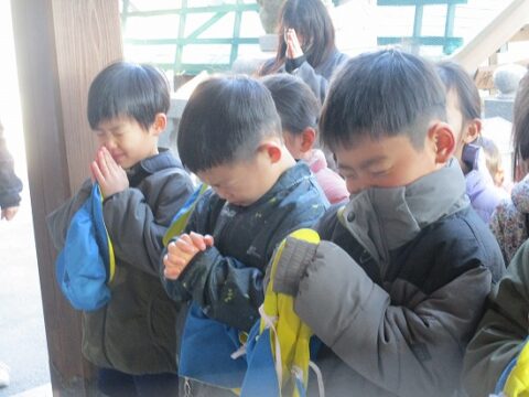 先週5歳児クラスで初詣を兼ねて平野神社に