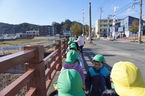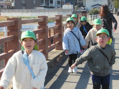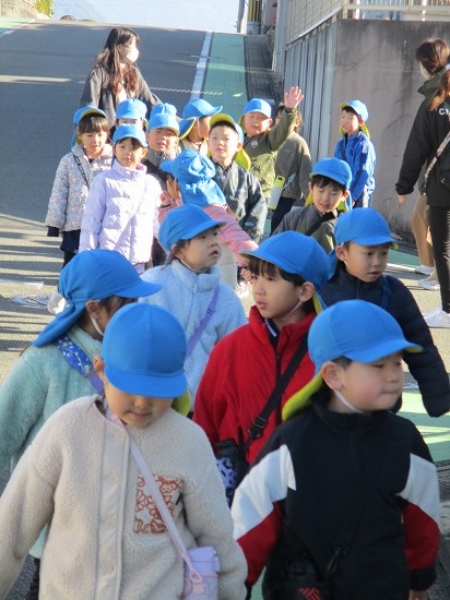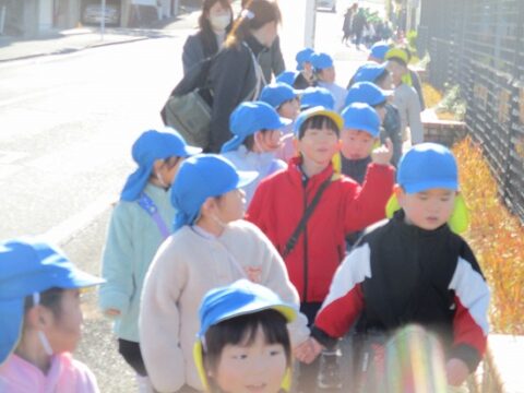 ゆり組さんも、仲良しのお友達と手を繋いで