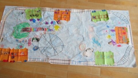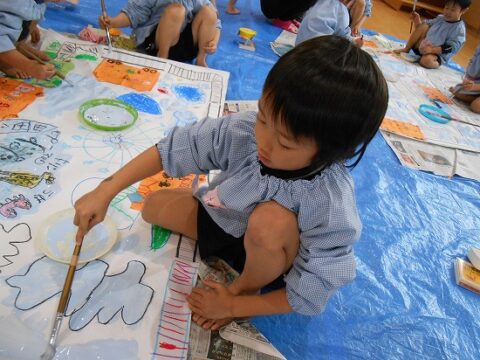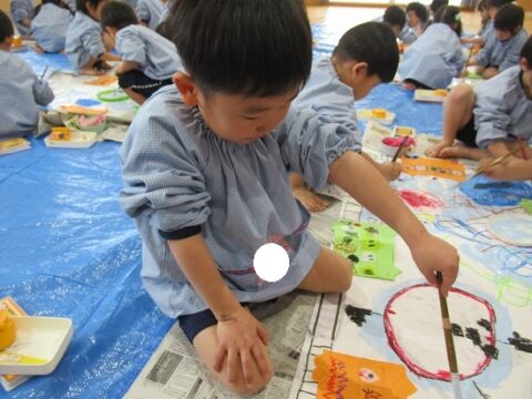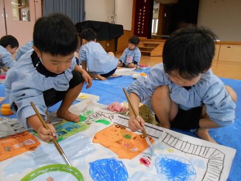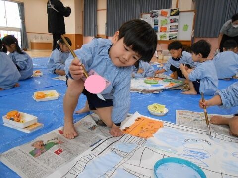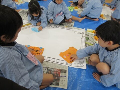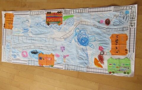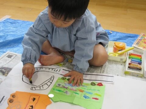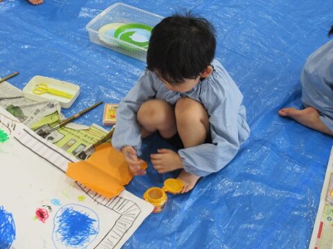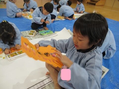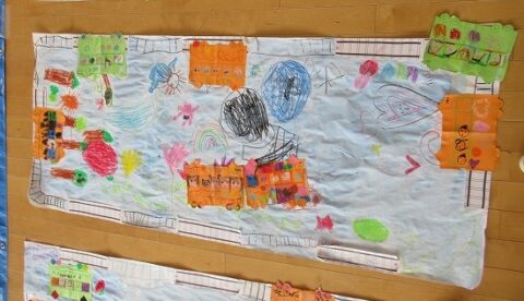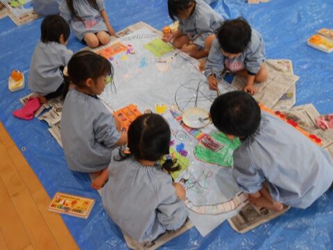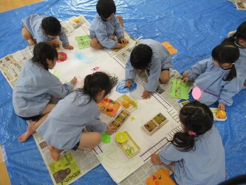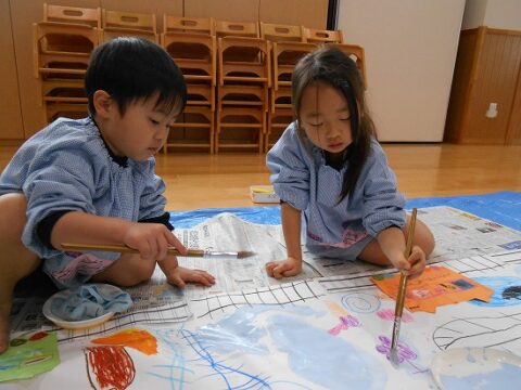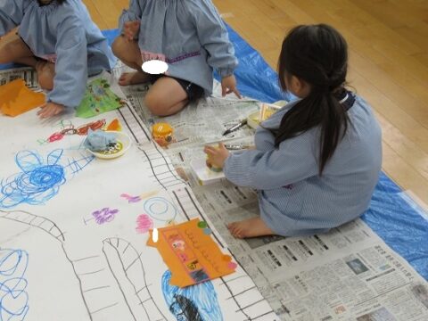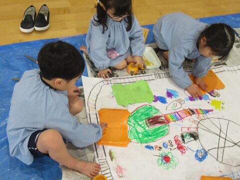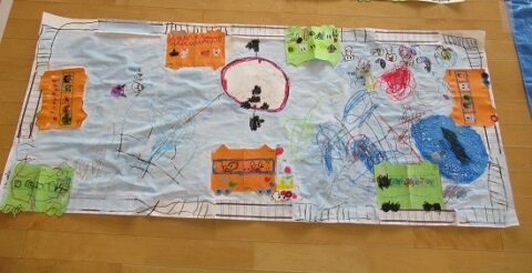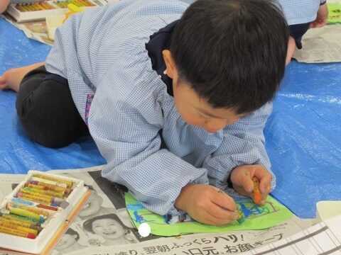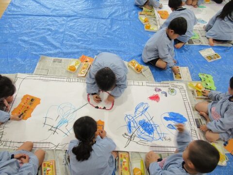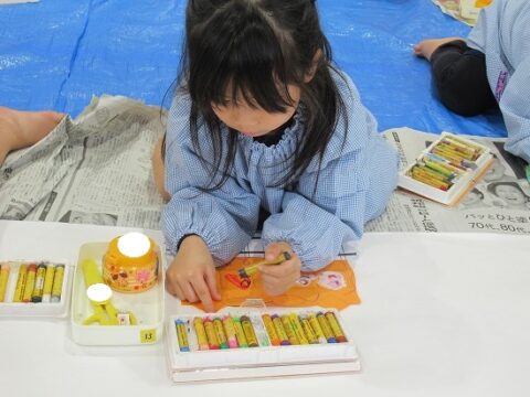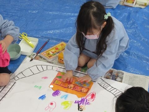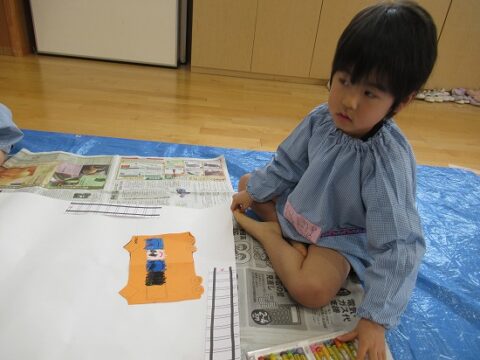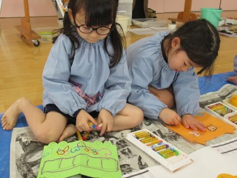 大きな白い紙にもお絵描きをしていきます🖍