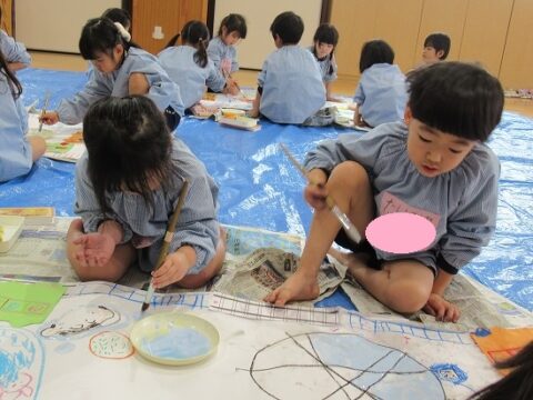 今日は、たんぽぽ組とすみれ組Bチームの絵画教室でした🖌🎶