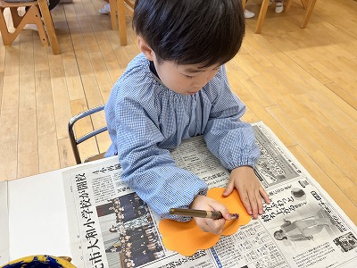 鬼のお面製作では、