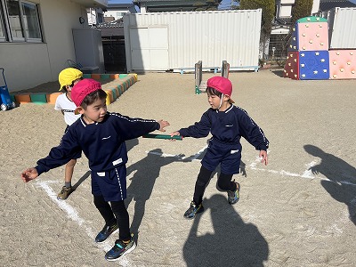 年長クラスに向けて、リレーにも挑戦しましたよ✊