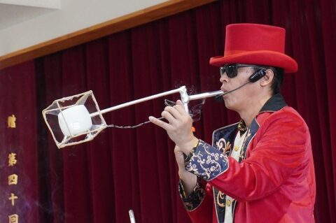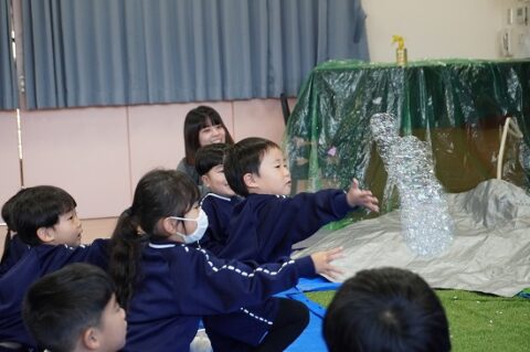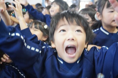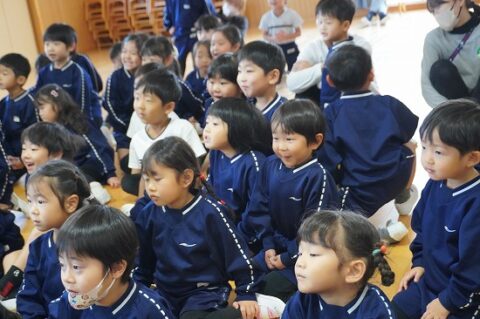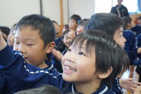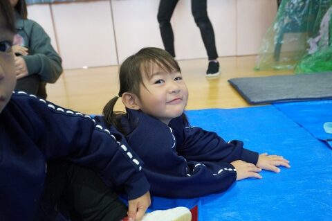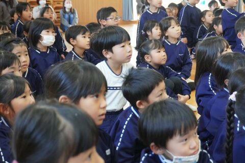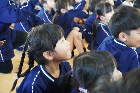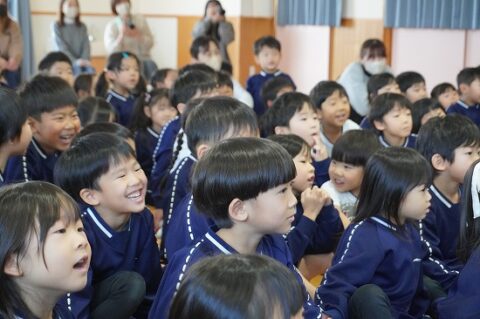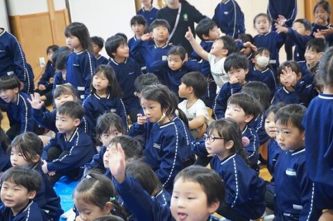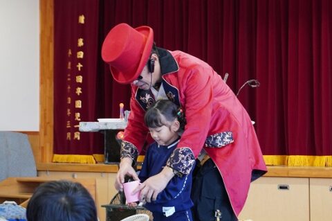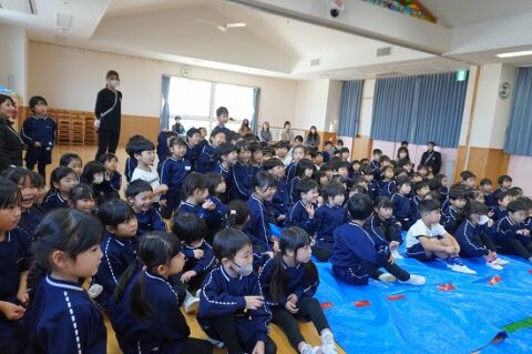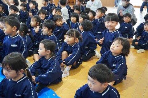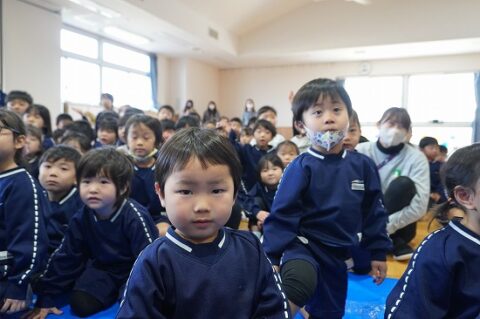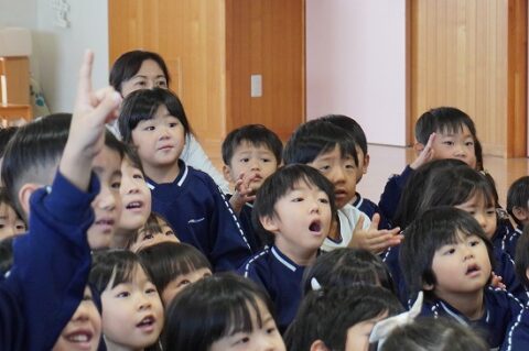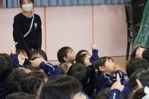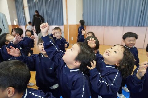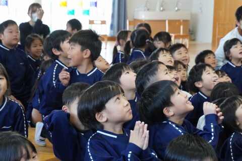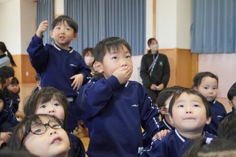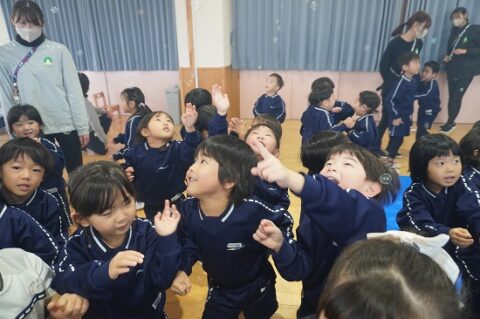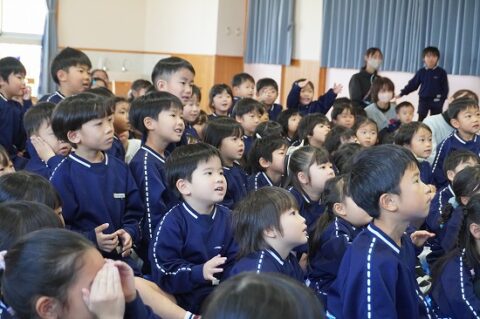 しゃぼん玉ショーに釘付けな子ども達