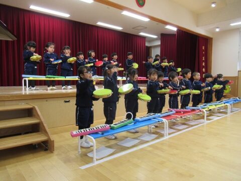 ピアニカ「森のくまさん」も、練習の成果を発揮し