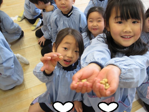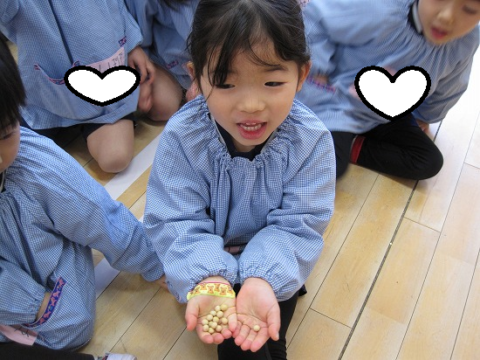 すみれ組さんも豆を貰って、ルンルン♫