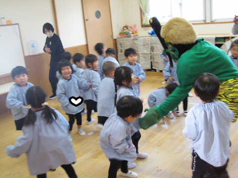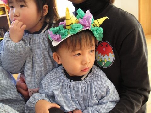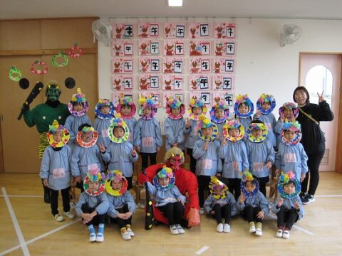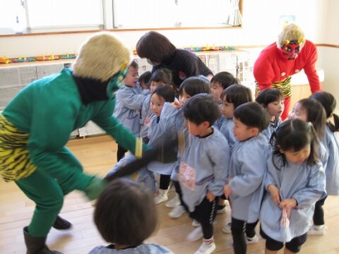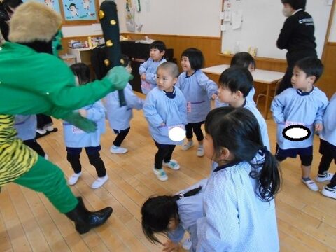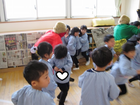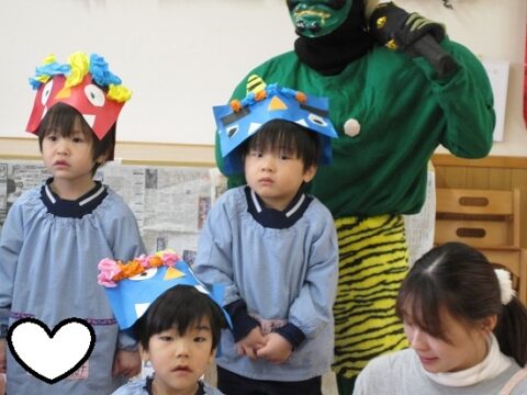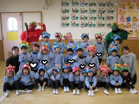 すみれ組さんも豆まきを頑張っていましたよ!