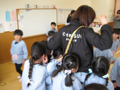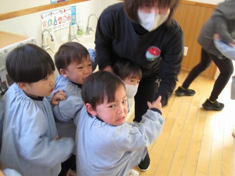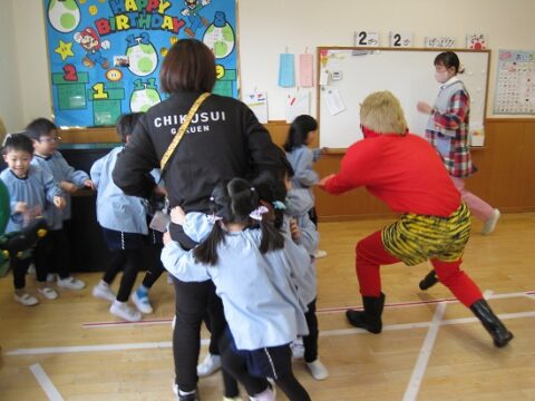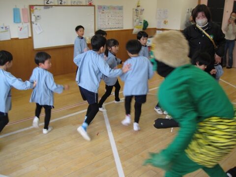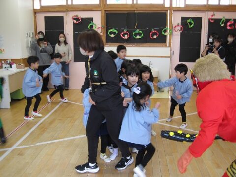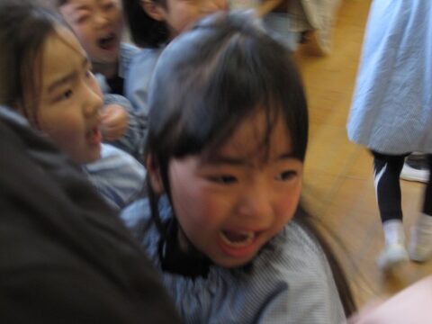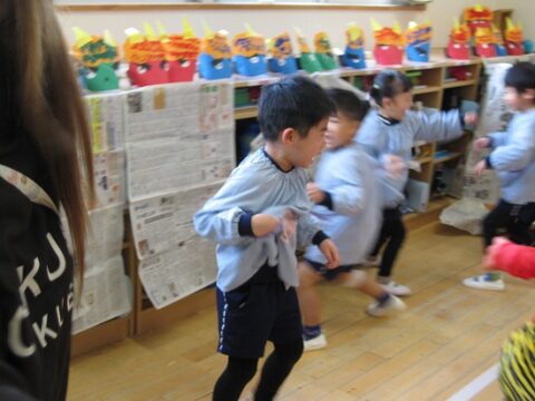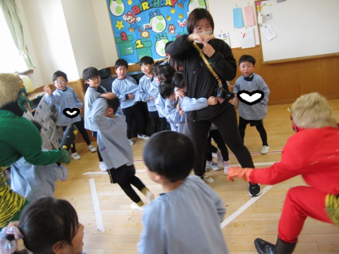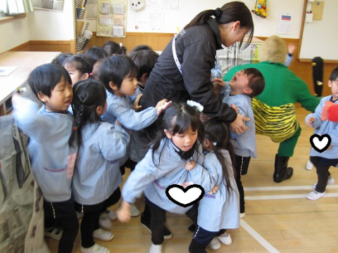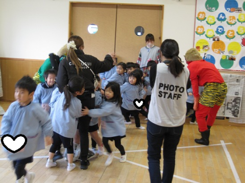 鬼から逃げようと先生の後ろが大行列になってますね(笑)