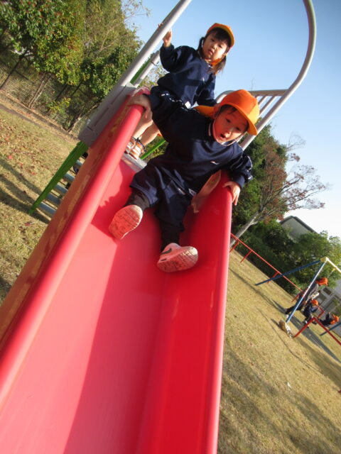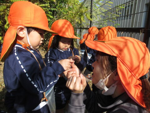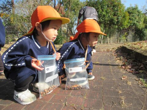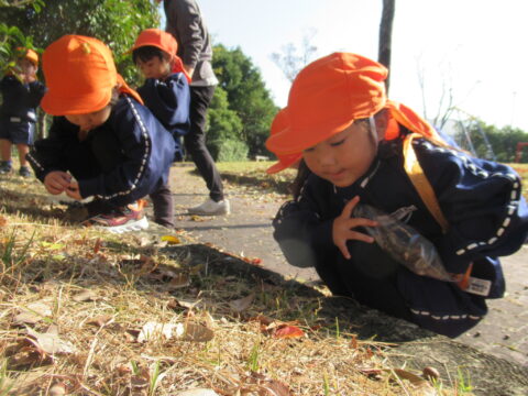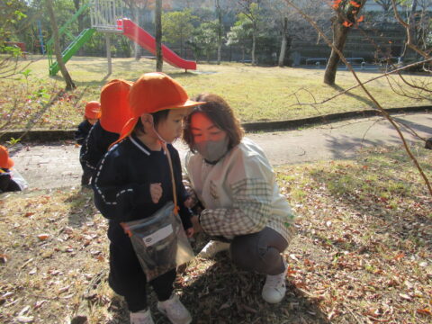 ブログ TOP > ブログ > あられぐみ🐻どんぐり拾い🎵 あられぐみ🐻どんぐり拾い🎵 今日はとっても天気のいい 一日でしたね☀ 幼稚園の隣の石坂公園に どんぐり拾いに行ってきました(^▽^)/ 二列に並んでおりこうさん❤ どんぐりの木を発見🌳✨ 興味津々👀 \せんせ~い、あったよ~!/ どこかな~? あそこにあるよ~! 園長先生と一緒に探してましたよ☺ こちらは、虫を観察中。。。 紅葉も綺麗でした✨ 絨毯のようでしたよ。 最後は遊具でも遊びました🎵 今日、公園で拾った どんぐりや落ち葉を持ち帰っています。 楽しかった思い出を、沢山 聞いてあげて下さいね💕💕 2025.12.02