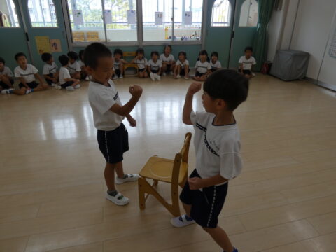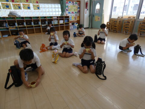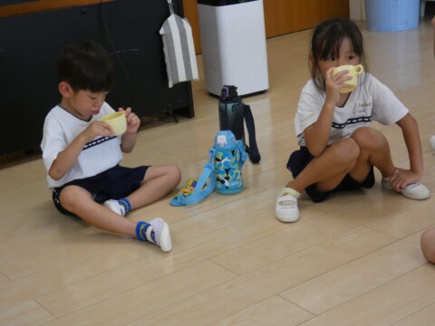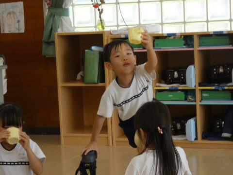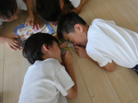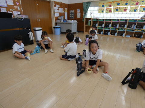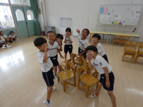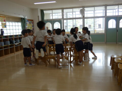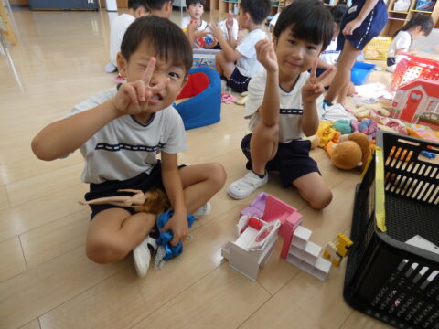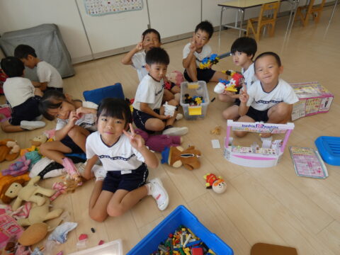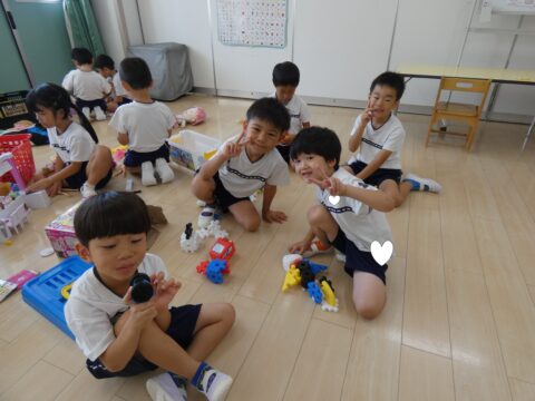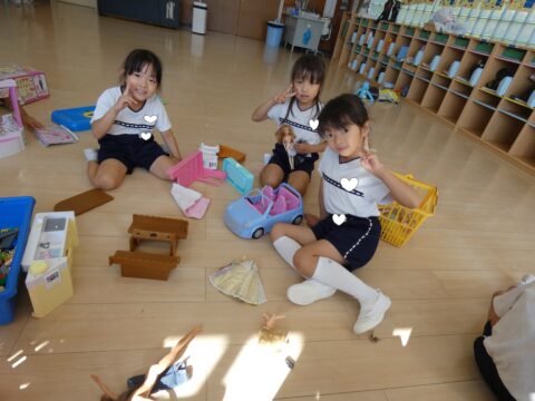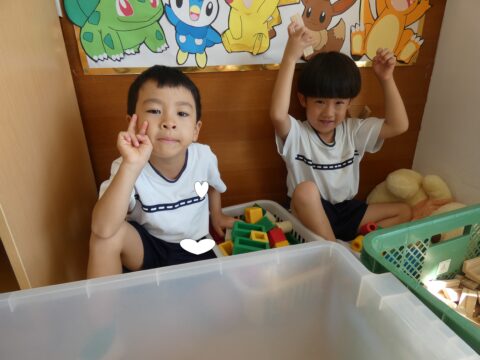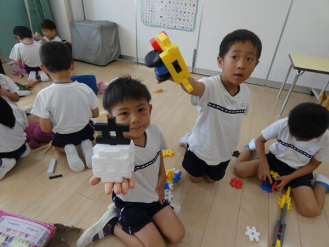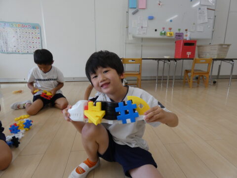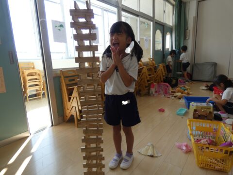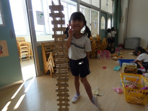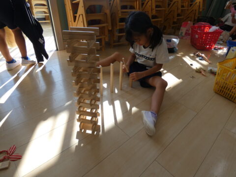 黙々とカラカラ積み木で遊んでいる女の子👧