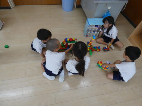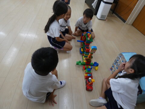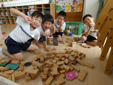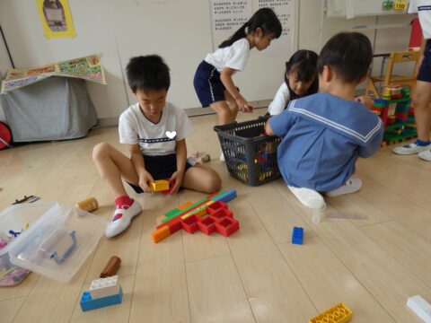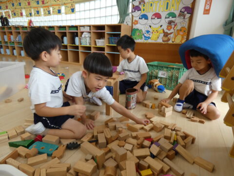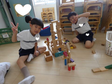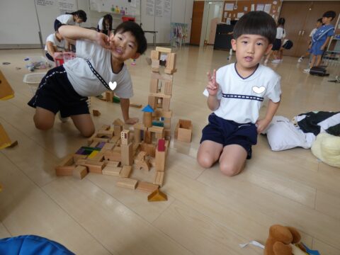 積み木で遊ぶ男の子達👦