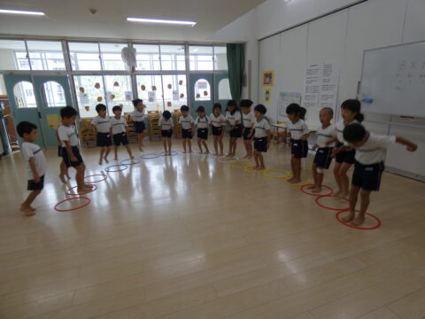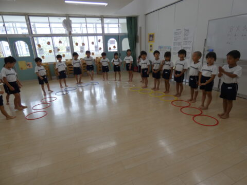 ♪BINGOの歌で順番に輪の中に入りました!