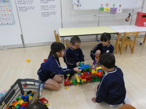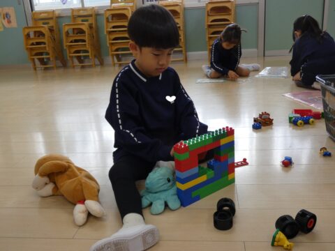 ブロックで大きな建物を作っていました!