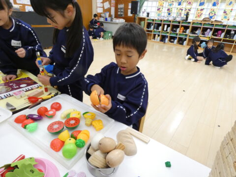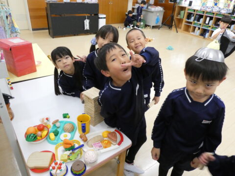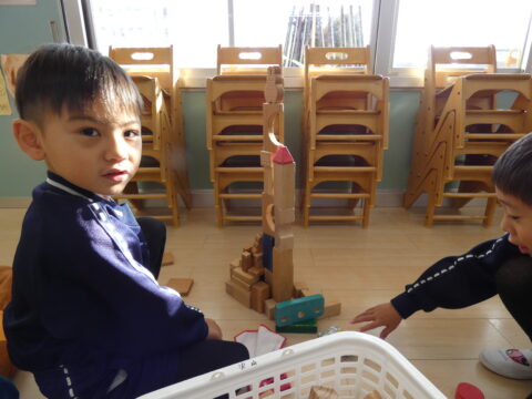 朝の自由遊びでは、積み木でお城が作られていました🏰